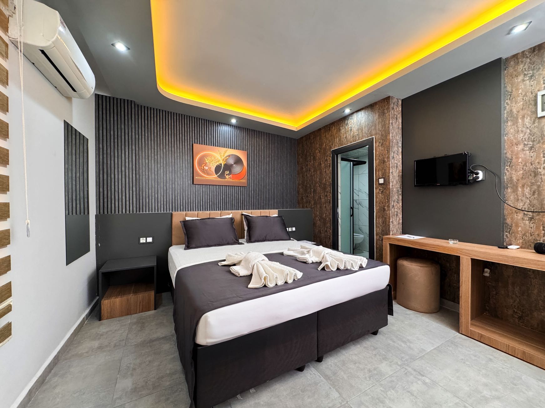 Odalarımızda bir adet büyük (double) yatak, klima, LED TV, mini bar, gardırop, telefon, duş, saç kurutma makinesi, ücretsiz 1.5L su ve sınırsız Wi-Fi gibi konforu artıran tüm detaylar düşünülmüştür.